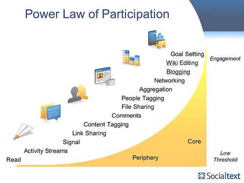 Ross Mayfield came up with a beautiful concept a number of years ago called the ”Power Law of Participation”